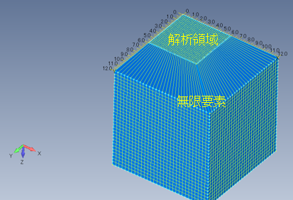 | 静解析 | 静的無限要素 | 六面体1次 | 標準的な形状関数を使用しますが、自然座標が特定の値に近づくと、要素が無限に漸近します |