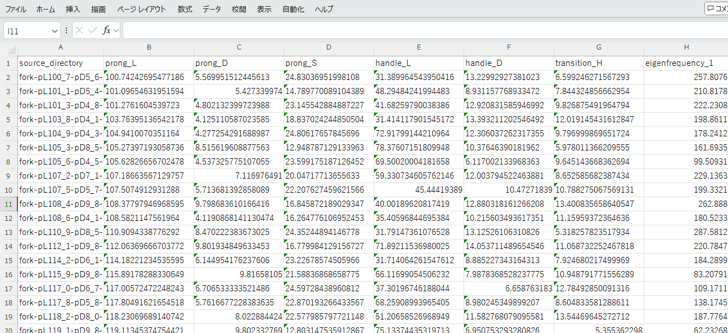 今回は 1,000 ケースの音叉を作成しました。 (gmsh を用いて 1,000 個自動生成)