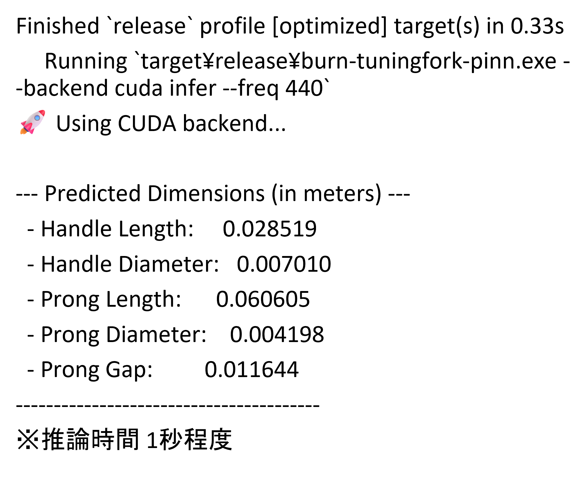 - MLP を使い望む周波数を入力し、妥当な音叉の寸法を出力する。