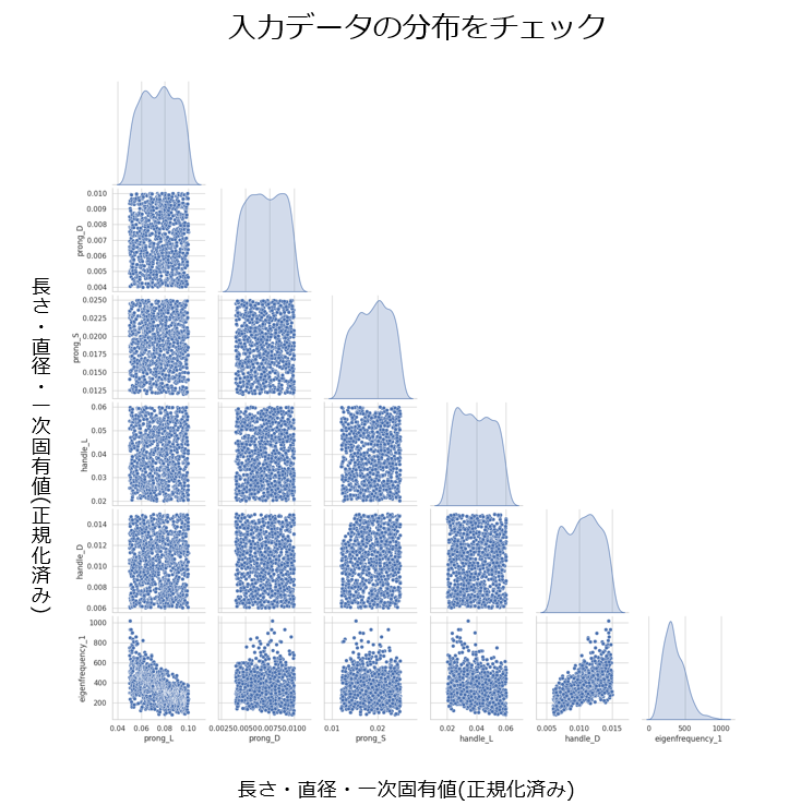 MLP で逆問題 (発音周波数→音叉の各種寸法) を求めるため、多数の教師データが必要となります。