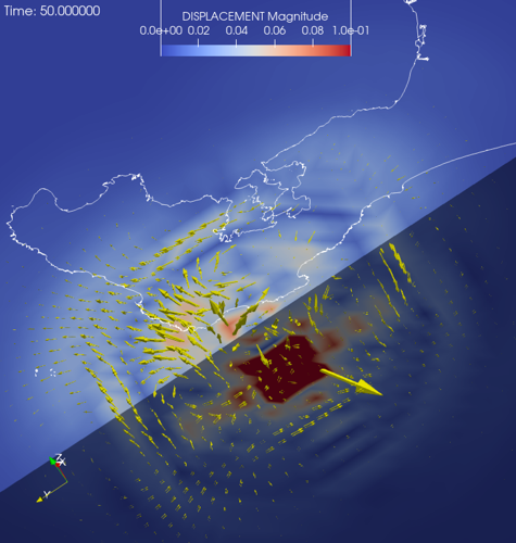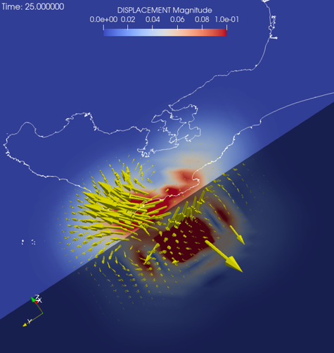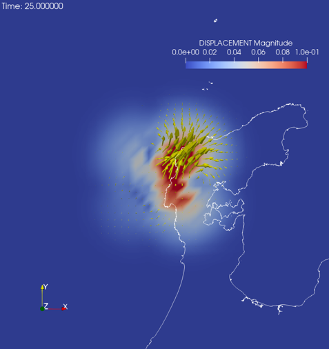地中震源近傍の変位分布#