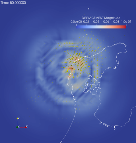 振動は震源を中心にほぼ同心円状に伝搬しています。