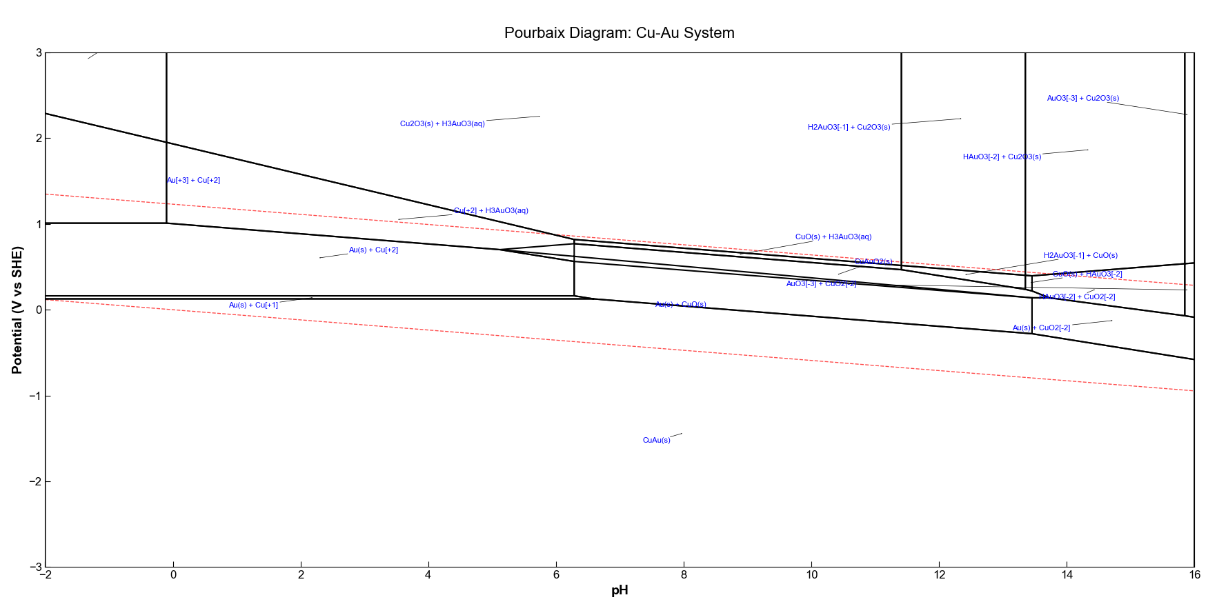 解析結果:Cu-Au-O-H系の更新版プルベー図#